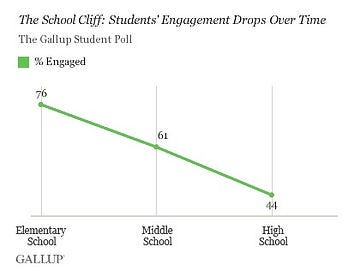 Kendimiz gezmemiş olsak bile, 2013 yılında yapılan bir araştırmanın sonuçlarını temsil ediyor bu rakamlar. Her geçen yıl öğrencilerin okulla olan bağının nasıl zayıfladığını gösteriyor aşağıdaki grafikte.